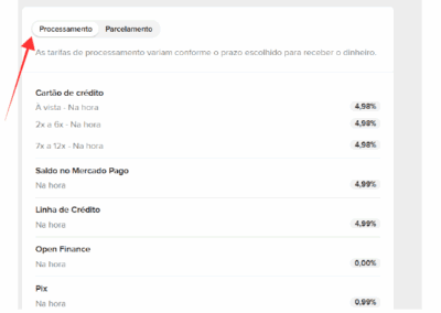 Na seção “Processamentos”, verifique quando o dinheiro cai na sua conta.